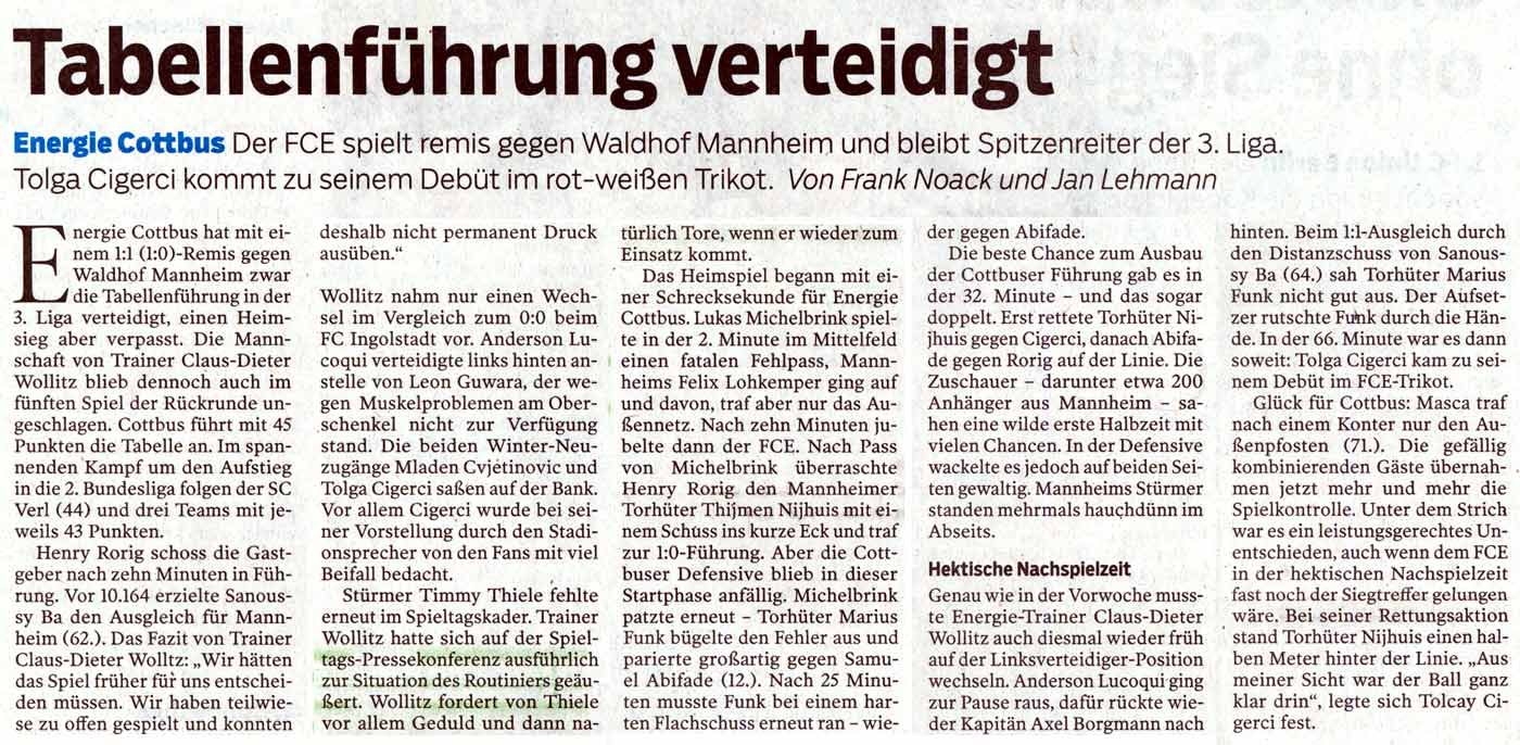 | Aufstellung FC Energie Cottbus |
