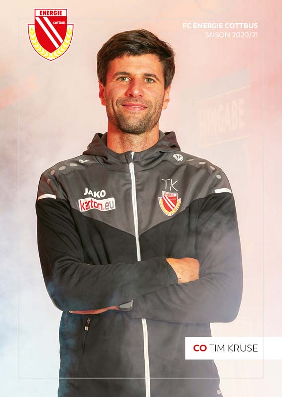 Dabei kann Tim Kruse auf die gesammelten Erlebnisse seiner langen Karriere zurückgreifen. 55 Zweitligaspiele für Rot-Weiß Oberhausen und 271 Drittligaspiele für Halle, Saarbrücken, Fortuna Düsseldorf und Bayer Leverkusen II stehen in seinem Lebenslauf. Dass er sich trotz seines gehobenen Alters dann doch noch einmal mit dieser neuen Herausforderung in Cottbus befasste und dafür auch den Gang in die Viertklassigkeit nicht scheute, spricht für den Charakter des Mittelfeldmannes.